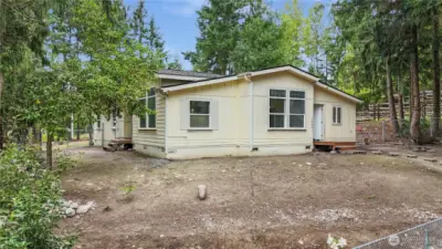 Charming 3 bed, 2 bath, 2005 sqft triple wide on a 5 acre lot! Bring your hobby farm visions. This home features an open concept floor plan with vaulted ceilings, space for a breakfast nook and tons of cabinet space. Walk into the huge primary suite with large closet and a soaker tub! Bedrooms are a great size. Property comes complete with large detached garage and a fully fenced yard. Minutes from the vibrant Downtown Eatonville with shopping and resturaunts. Plenty of forest surround the property proving plenty of privacy. Come view today!