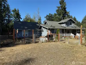 Welcome to this lovingly remodeled 2684sqft farmhouse on 1.23 acres in the City of Shelton. The large covered front porch invites you into your new home. As you enter, the dining room and kitchen to your left have been updated and renewed. Wood-wrapped beam, shiplap wall, and stainless appliances lead into the sunny breakfast nook. New main floor primary suite is huge! Primary bath includes a soaking tub & separate shower. Walking back toward the front of the house, the living room features a rustic stone fireplace with insert. The hallway leads into the office & a 3/4 bathroom with double vanity. Upstairs has two extra bedrooms. Large fenced yard has a kennel and gazebo. Large 864sqft two-car detached garage for workshop or storage.