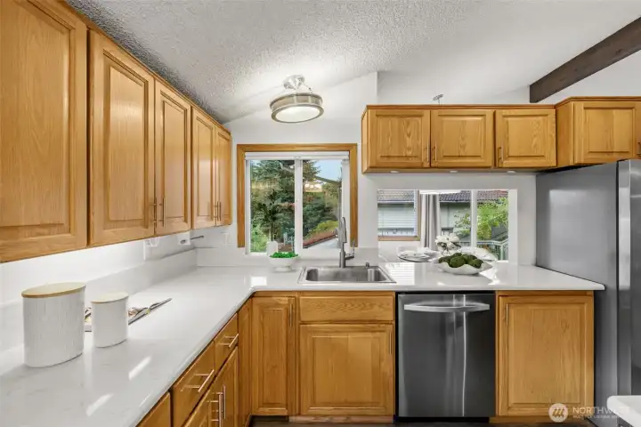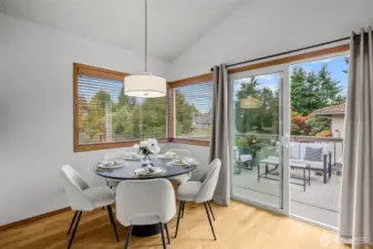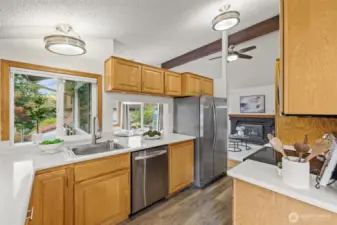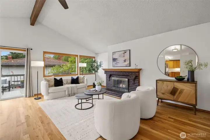 Located in coveted North Beach! This lovingly maintained home features an open layout w/ vaulted ceilings + exposed beams! Offering 3 bedrooms on the main floor & 4th bedroom located on the lower level. Spacious living & dining room area + wood burning fireplace! Kitchen includes eat-in nook surrounded by open light-filled windows open up to a large deck! Lower level welcomes a spacious bonus living room area + additional fireplace. Downstairs opens to a private large patio surrounded by mature landscaping, ideal to entertain large gatherings! Expansive lot w/ huge yard & driveway! Same owners for 45 years! This timeless beauty is a must see and is centrally located near Golden Gardens, coffee shops + amazing parks!