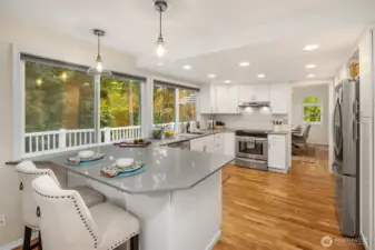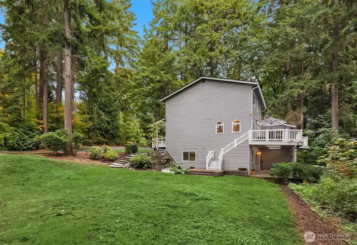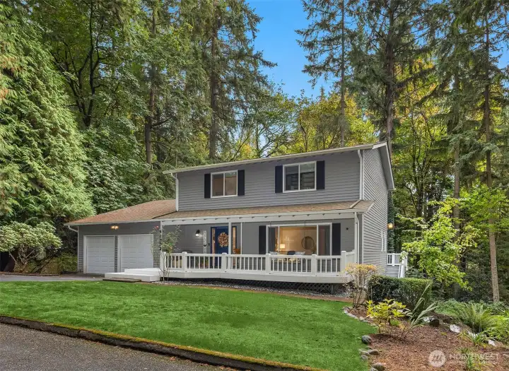 This 3+ bedroom, 3,320 sq ft home sits on a private cul-de-sac in sought-after Hollywood Hill. The flexible floor plan & thoughtful redesigns make it ideal for multi-generational living. Upstairs features a remodeled primary suite with dual walk-in closets, plus two additional bedrooms and a fully remodeled bath. The lower level, with its own entrance, includes a spacious great room, full bath, and three finished rooms with windows and closets—perfect for guest quarters or extended family. Enjoy the cook’s kitchen, tranquil deck, and covered patio for year-round use. Newer roof, two-car garage, EV charging, and backup generator add peace of mind. Conveniently located near Hollywood Hill Elementary, downtown Woodinville, and wine country!