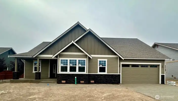 Sanders Mill New Luxury Home... Ideal location close to town. Quality built craftsman detailing on extra large lot, front porch entry, open floor plan, designer interior, custom details throughout, vaulted ceilings, gas fireplace, built-in storage & luxury vinyl floors. Spacious kitchen, quartz counters, high-end appliances, island seating & abundance of cabinets & pantry. Primary bedroom w/vaulted ceiling, walk-in closet, en-suite w/tile shower, freestanding tub, heated tile floors & double sinks. Den w/double doors & light bright 400 sq. ft. bonus space makes this your perfect forever home. CCR's***Front yard landscape w/plantings, fenced backyard, sprinkler system & sod both front & back included***