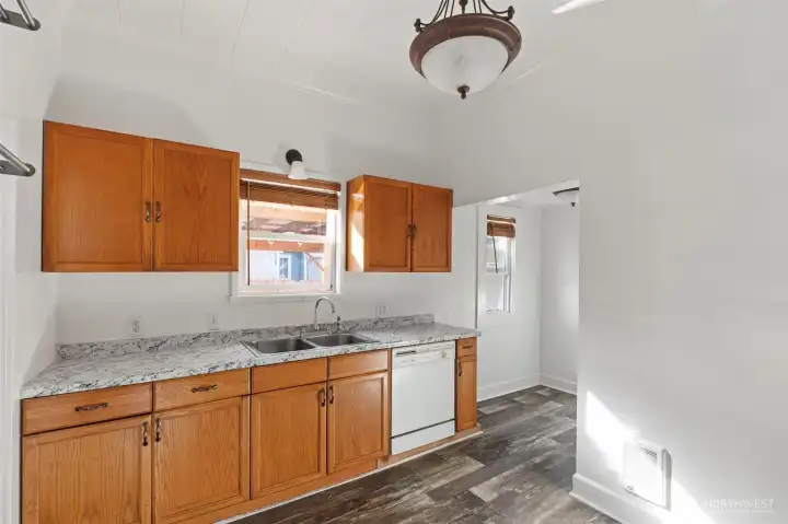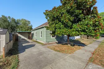 This delightful 2-bedroom, 1-bathroom house is a perfect place for a cozy retreat. Nestled in a historic neighborhood, this property is just a stone's throw away from vibrant downtown & mere minutes from the freeway, ensuring that you have the best of both worlds—peaceful living with urban accessibility. Pull into the driveway with a covered spot for parking and a utility shed to store the lawn tools. Sit a while on the covered front porch before stepping inside to discover a large living room bathed in natural light w/an open layout allows for seamless interaction between spaces, making it a hub of comfort & warmth. Step outside into the blank canvas of fully fenced back yard. Don’t miss the chance to make it yours! Your new home awaits!