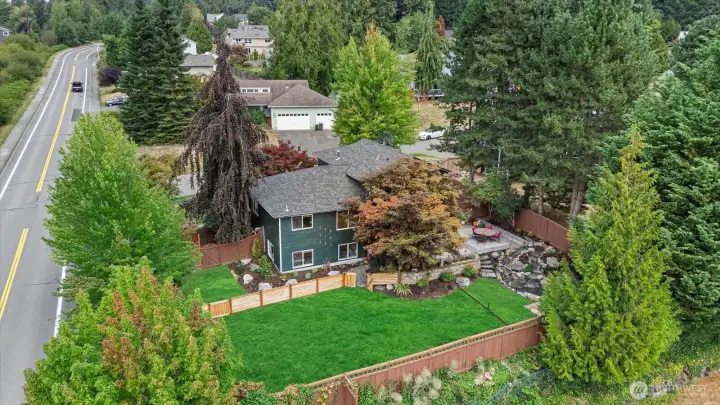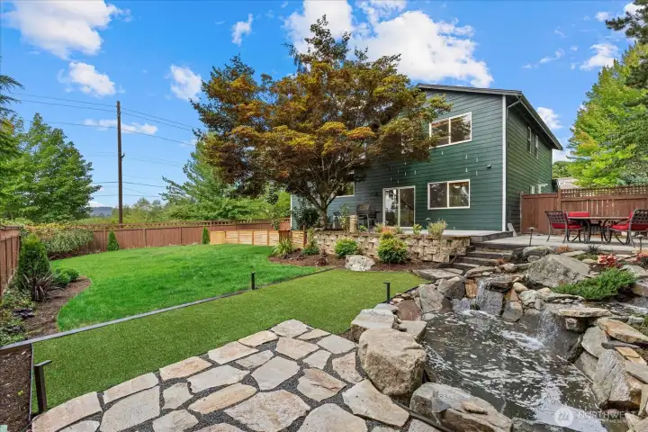 Beautiful corner home in Kasper Heights—bright, spacious, and move-in ready! The main floor features an open great room with living, dining, and kitchen areas, plus a walk-in pantry. A few steps down is a cozy family room with gas fireplace, half bath, and laundry. Upstairs offers a primary suite with ¾ bath, two more bedrooms, and a full hall bath. The finished basement includes a large bonus room, additional bedroom, and storage. Outside, enjoy a gardener’s paradise with a waterfall, patio, pet yard, front fountain, and lush rockery. New roof, updated HVAC with A/C. Close to trails, restaurants, Microsoft, City Center, and just 10 min to Redmond.