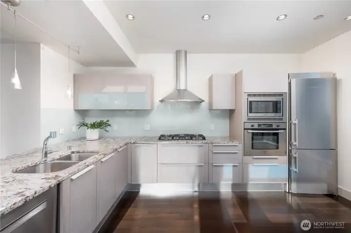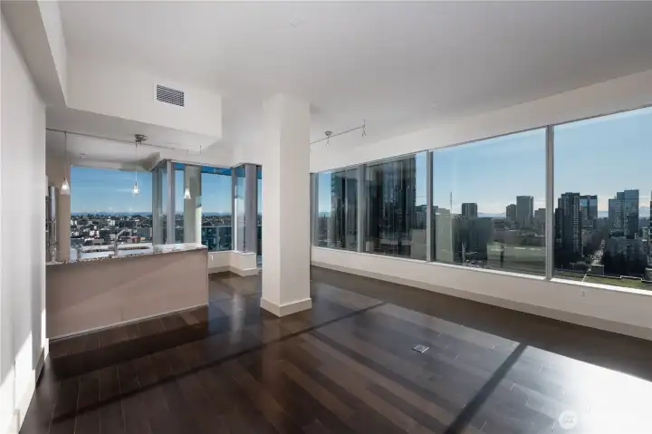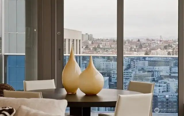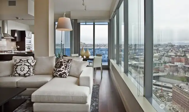 Above the Sparkling City lights of Seattle, enjoy floor to ceiling views of snowy mountaintops and the Bellevue Skyline 8 miles away. This lovely Southeast corner home features all the amenity one would expect above Seattle's premier Hyatt Hotel; unique access to 5-Star hotel amenities: 24-hour concierge, room service, Gym, sauna, steam room, saline lap pool & spa. Residents-only club features a BBQ terrace, dog lounge, grooming station and event room. Uniquely remodeled with a spacious chef's kitchen and extra storage space. Walk to shopping, theaters, restaurants, Amazon, Google, Apple and Meta, Whole Foods. Easy access to I-5, light rail & SLU streetcar. The veritable foodie paradise of Capitol Hill or Pike Place Market at your doorstep. Photos from the same plan upstairs.