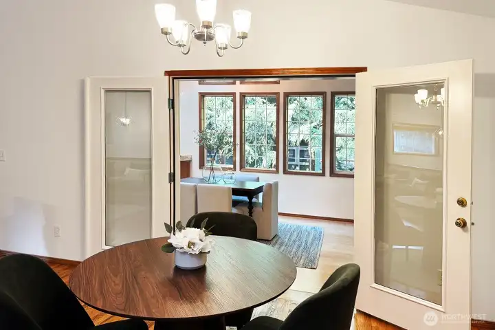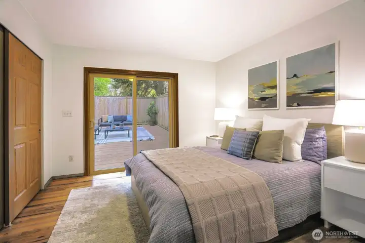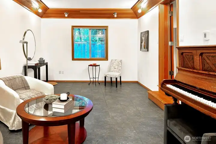 It's Fall Y'all and this home is perfect for celebrations. Elegant, spacious, serene with soaring vaulted ceilings, windows galore, great wall space for your art. This home features a very flexible, light-filled circular floor plan design with primary suite plus 2 more bedrooms + full bath. The updated kitchen flows into a big living and dining area with a gas fireplace, a vaulted great room with grand windows and skylights opens to the deck for effortless indoor-outdoor entertaining. 1st floor is a complete ADU with living room, kitchen, bath, oversized bedroom, separate entry. Acoustically designed studio & a two-car garage. A detached backyard studio offers options for an office or creative space. Close to amenities and schools yet quiet