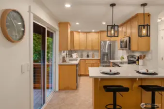 Ideally situated amongst magnificent fruit and cedar trees, this freshly updated Juanita gem provides privacy, functionality and convenience. The backyard retreat boasts a massive new Trex deck perfect for both quiet evenings and large gatherings. The entire interior of the home has been refreshed with new paint, carpet, stylish fixtures and impeccable finishes. Four bedrooms, 2.75 baths, an office AND a huge bonus room provide a functional and versatile floor plan. The fashionable kitchen is highlighted by quartz counters, SS appliances and a stunning backsplash. Primary bedroom features an en-suite bath and walk-in closet. Pre-Inspected. Lake WA schools, easy access to 405 and all the EastSide has to offer!