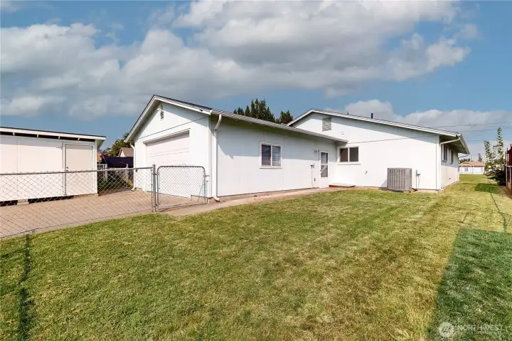 This single-story residence features three bedrooms and two bathrooms, complemented by a spacious bonus room. Accessibility is enhanced with wide doorways, a roll-in shower, and hard flooring throughout. The large kitchen offers ample space for future expansion. Additional highlights include an oversized two-car garage with alley access and RV parking, a fully fenced yard, and extra storage provided by a rear shed. Recent improvements include a new roof and exterior paint within the past five years. This home presents significant potential and awaits your personal touch. Seller offering 1 year Home warranty!