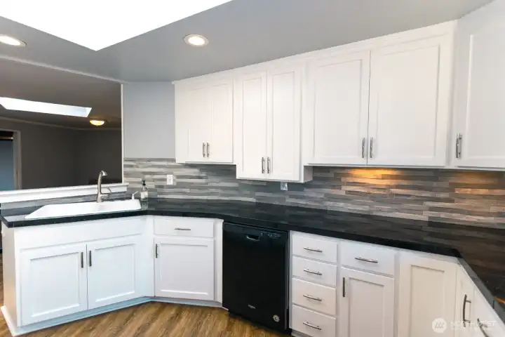 Spacious rambler on a corner lot with fresh modern updates, perfect for everyday living, entertaining, or even an Adult Care Home! The remodeled kitchen shines with granite tile counters, under-cabinet lighting, and luxury vinyl plank flooring, opening to bright living spaces with six skylights and a cozy gas stove. The primary bedroom is a true retreat with its own gas fireplace. Bathrooms feature heated tile floors and a walk-in shower for spa-like comfort. Step outside to your brand-new, fully fenced backyard with a large deck, gazebo, and plenty of space for gatherings, BBQs, or relaxing under the stars. RV/boat parking and extra storage add convenience. Recent upgrades include a new service panel, roof/skylight reseal.