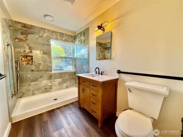 Welcome to this adorable 2 bedroom, 2 bathroom home! Recently updated, this single-level residence boasts a spacious living room with beautiful wood floors and an open concept kitchen featuring modern finishes with tile counters, a stylish backsplash, and stainless steel appliances. Enjoy meals in the cozy dining area that adjoins the kitchen. The primary bedroom offers a convenient continental bathroom, while the hall bathroom is equipped with a luxurious walk in shower adorned with a gorgeous tile surround. Step outside to a covered back patio and a fenced backyard, perfect for relaxation or entertaining. Additional highlights include a detached single car garage with a workshop area, a woodstove, laundry, RV parking.
