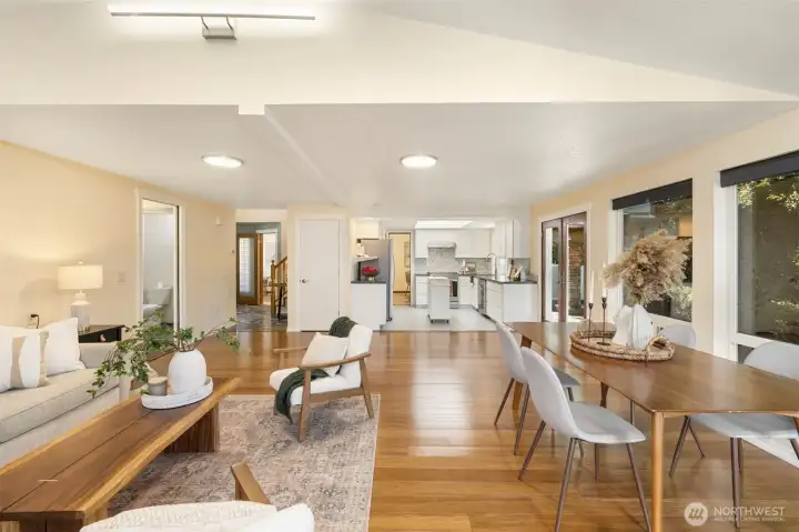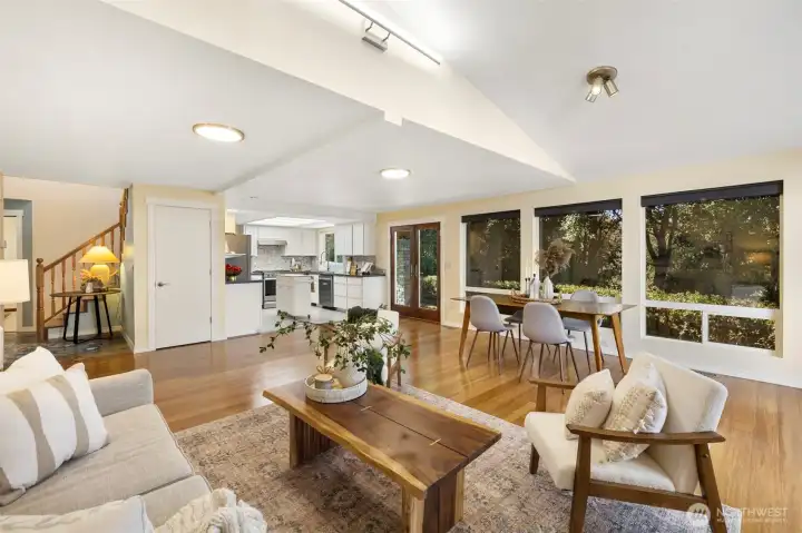 Beautifully updated and thoughtfully designed, this well-maintained home blends style, comfort, and a peaceful natural setting. The vaulted family room is filled with light from large windows overlooking greenspace, while the refreshed kitchen offers solid-surface counters, white cabinetry, and stainless steel appliances. Enjoy a cozy living/dining area with plantation shutters and access to a covered patio—perfect for entertaining. Upstairs, the spacious primary suite features a private deck, walk-in closet. This home has numerous updates for peace of mind: new furnace (2024), rebuilt A/C unit (2025), new backflow system (2025), Terrafirma drainage system (2021), and a water filtration system.