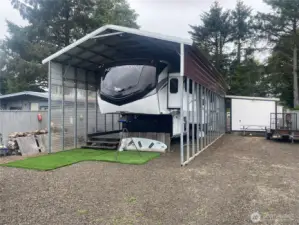 This property is located in the coveted Division 12 of Ocean Shores, where year-round RV camping is allowed. This property is a snow bird's dream as it includes a 45', 490 SF stunning, fully-loaded 2022 Jayco fifth-wheel trailer ready to move into. Includes two 15,000 BTU A/C units, vinyl flooring throughout, 1.5 bathrooms with 2 sinks in the master bathroom as well as a shower so big it includes a seat! Large roomy kitchen with an island. Handcrafted hardwood glazed doors, drawers and trim throughout. Property also includes an accessory unit with working shower, washer/dryer, sink and storage. Spacious decking on both sides all covered under large RV carport.