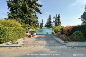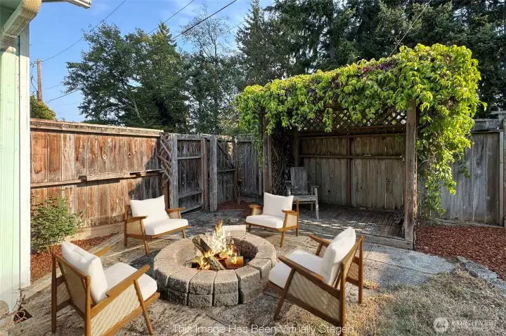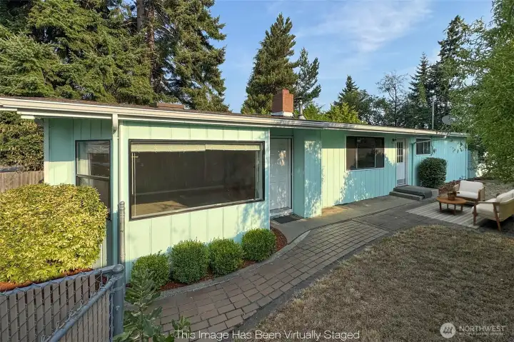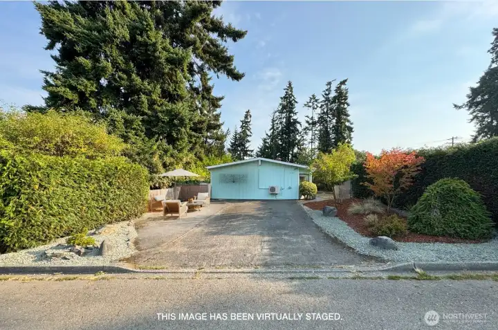 This one-level home offers privacy, comfort, and plenty of space to live, relax, and grow. The living room features a wood-burning fireplace, and the dining area includes a sliding glass door to the patio—ideal for BBQs. Laminate flooring runs through the main living areas. The kitchen includes Corian counters, breakfast peninsula, and all appliances included. A separate family room and a bonus room is perfect for office, crafts, or play. A nearby ¾ bath adds flexibility. Opposite end of the home features three bedrooms and a full bath with updated tile surround. Mostly fenced yard, mature landscaping, fire pit, and covered pergola seating. Parking includes a front driveway and detached two-car garage - space for extra vehicles or trailers.