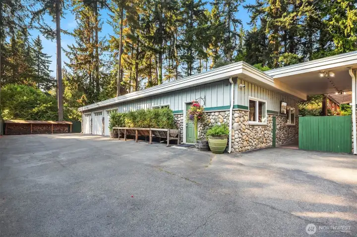 Woodway retreat like no other this 4-bed mid-century estate sits privately on nearly 1-acre. At its heart a massive covered courtyard w/heaters creates an all-season gathering space seamlessly connecting the huge vaulted great room. Soaring walls of glass & 2 dramatic river rock fireplaces. Built-ins throughout. 2 generous primary suite options: 1 w/ 5-pc bath, hot tub, deck, & deck access; the other w/ full en-suite & own oversized covered patio. Chef’s kitchen. Detached bonus so expansive, host a dance. Raised garden beds, greenhouse, wooded trails, playhouse, book-filled studio & rustic retreat cave. Sport Ct, lush landscaping. 2 gated entries one to 3-bay garages another to circular drive. Endless storage. Everyday feels like a getaway.