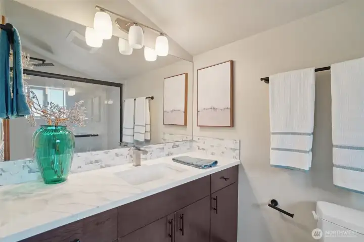Fantastic like-new townhome in the heart of Ballard just blocks away from shops, dining, theater & farmers market. The Spacious & open main level features a chef’s kitchen with gas range, beautiful granite counters & stainless steel appliances, a gas fireplace & powder room. Upper level includes a gorgeous primary suite with en-suite bath & vaulted ceiling, 2nd bedroom, full bath & laundry. Rare attached 1-car garage with storage. Enjoy your outdoor spaces including a large private courtyard, or the deck off the living room, this home has it all! Don't miss this opportunity for style, comfort, and convenience, with close proximity to everything Ballard has to offer!