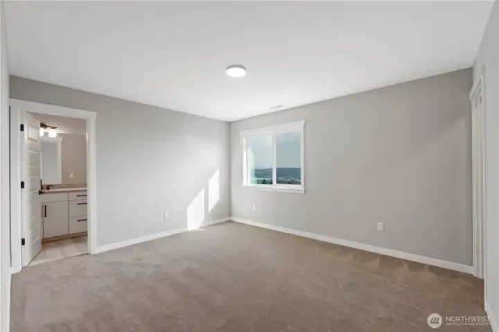 Luxurious new construction with stunning Mt. Rainier & valley views from most bedrooms on a .50-acre corner lot. Enjoy a 420 sq. ft. vaulted deck plumbed for BBQ. Inside features 9' ceilings, Pecan hardwood floors, Craftsman trim & wood-wrapped windows. The gourmet kitchen includes quartz counters, soft-close shaker cabinets w/under cabinet lighting, an under mount sink, ZLINE gas cooktop, NXR professional range hood & top-tier Whirlpool stainless appliances. The primary suite offers a balcony, walk-in closet & 5-piece bath. Upstairs boasts 3 bedrooms, bonus room & office. The finished daylight basement has a full bath, separate entrance, is plumbed for a future kitchen, has a 400+ sq. ft. patio w/valley view - perfect for potential ADU.