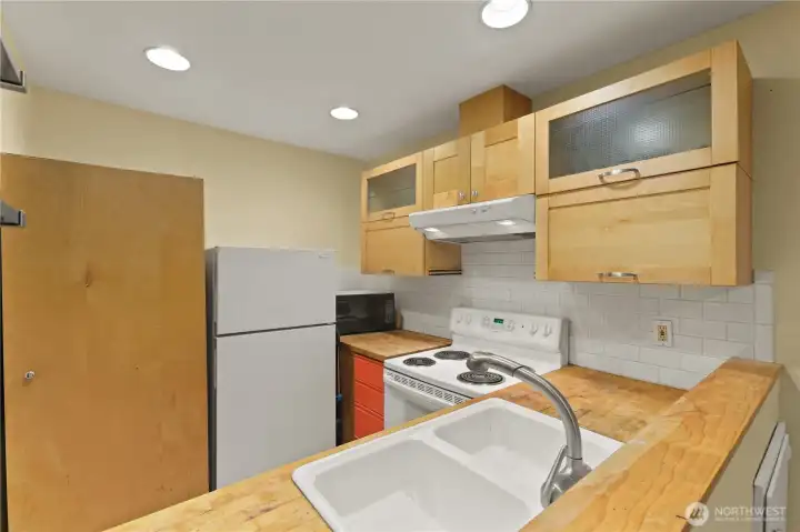 Welcome to this Capitol Hill gem—bright studio with 383 sq ft of open living (plus private deck). Features new waterproof vinyl plank flooring, full bath, in-unit laundry, and essentials: electric stove, dishwasher, disposal, and fridge. Updates include 2023 water heater and moisture shut-off. Includes secure garage parking and private 4' x 4" storage—rare in the area. Gated 84-unit complex offers elevator, controlled entry, and garden courtyard. Just two blocks north of Olive Way, steps to cafés, nightlife, parks, and transit. Walk Score 97—near light rail, I-5, Downtown, Amazon, and SLU. Ideal for living, renting, or investing.
