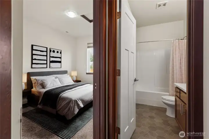 Modern rambler with large bonus room above the garage—ideal for guests, office, or play space. The open layout kitchen is the heart of the home, featuring a spacious island, pantry, beautiful cabinetry, luxury countertops, & gas range (with pot filler)—a space that brings everyone together; bright, functional, & made for connection. Enjoy morning coffee on the front porch then evenings on the covered back deck (with gas BBQ hookup) overlooking a fully fenced, beautifully landscaped yard. The primary suite is separate from the other bedrooms & includes an oversized spa-like shower, dual-sink vanity, & walk-in closet. Also features a large hallway, wide stairs, & modern flooring & finishes. Near schools, parks, & shopping for an easy commute.