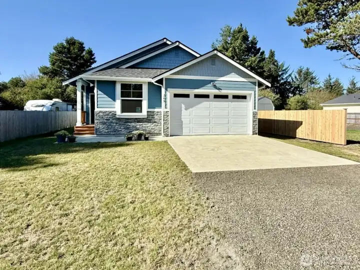 Like-New Residence near a park/pool, ocean beach access approach, 18-hole golf course, Duck Lake and Grand Canal, and a bit further to downtown Ocean Shores, Washington! This plan features 1435 sf with 3BR, 1.75BA and a 2-car garage. Elegant great room with coffered ceiling, fireplace, and door leading to the covered back deck and yard. Kitchen with Quartz countertops, beautiful cabs and a large Granite island/breakfast bar. Dining room area. Private primary ensuite with dual sinks, shower and a walk-in closet. Follow the hallway to a full bathroom, 2 sunny bedrooms, utility/laundry room and 2-car garage. Mini-split A/C and heat system. Bullnose corner trim. Hot/cold exterior spigot. Full-size 7200 sf parcel. OUT of the community club.