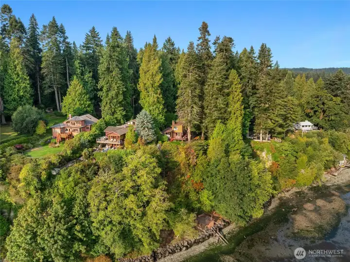 Custom 1970s waterfront home awaiting your loving attention. Ideally located with views of Seattle and the shipping lanes, this home is minutes to the Seattle ferry for easy weekend getaways or the daily commute. Both bedrooms and nearly every room in the house boast a view of the water. Solidly built with a newer roof, private well, good septic system, and fully bulkheaded, there is a permitted boat house and stairs to the beach in need of repair. The large walk-out unfinished basement is perfect for a workshop or more. Savor the peaceful & magical acre of grounds offering soaring cedar trees, an open grassy area, and an outdoor patio with a stone fireplace. Come bring your ideas and roll up your sleeves - make this hidden gem shine.
