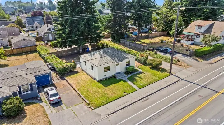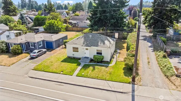 Beautifully renovated Central Tacoma home from top to bottom. Updated plumbing, wiring, new roof and gutters. Hardie plank siding, fresh interior & exterior paint. Newly renovated kitchen and bathroom, plus all newer appliances stay! Energy efficient windows. New flooring. See aerial photo for a birds-eye view of how the home is perfectly situated on this lot showing its opportunity. More than just a yard behind the house, unlock the properties potential which includes a side alley access and outstanding potential for a future DADU or large shop and garage. Amazing layout and a turnkey home! Conveniently located near schools, shopping and freeways for an easy commute.