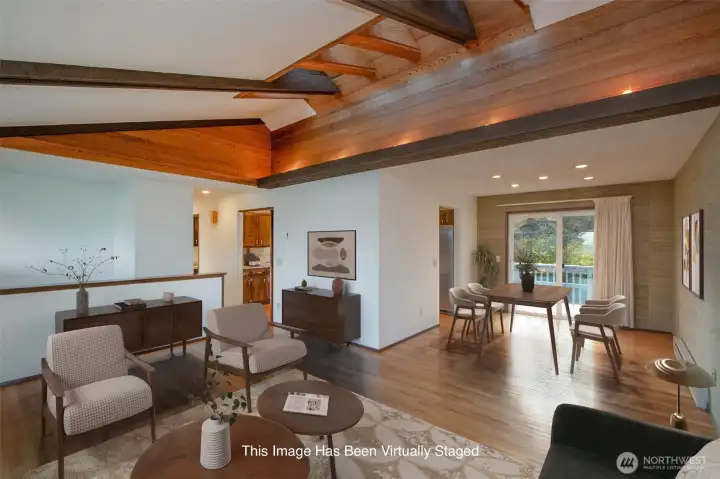 Island View Estates 3BR/3BA home on a 0.22-acre lot on a quiet, dead-end street. Mature landscaping provides privacy, while abundant wildlife and stunning views of the Strait of Juan de Fuca, Mt. Baker, and Victoria, BC offer a daily connection to nature and beauty. Vaulted ceilings, skylights, and wood floors add warmth and character. The upper level includes living and dining areas, kitchen, guest suite, and a spacious primary with private deck and tile-finished en-suite. Downstairs features a large family room with wood stove insert, guest bedroom, ¾ bath, and laundry. Fenced backyard and generous parking. Near the Olympic Discovery Trail. Enjoy dynamic water views with passing ships & pilot boats. Brand new roof installed January 2026.