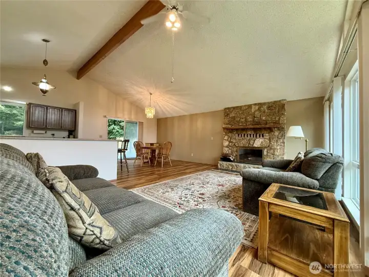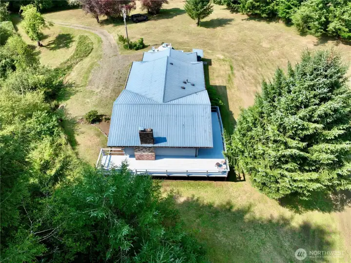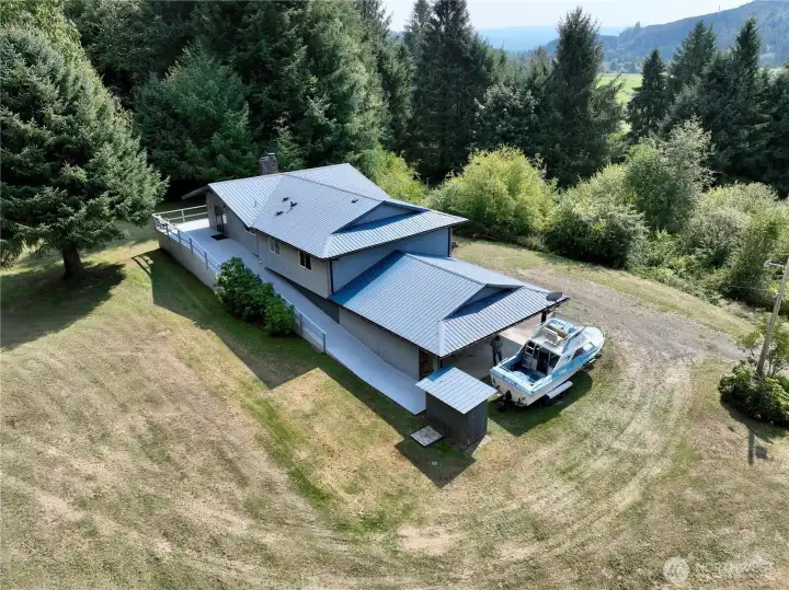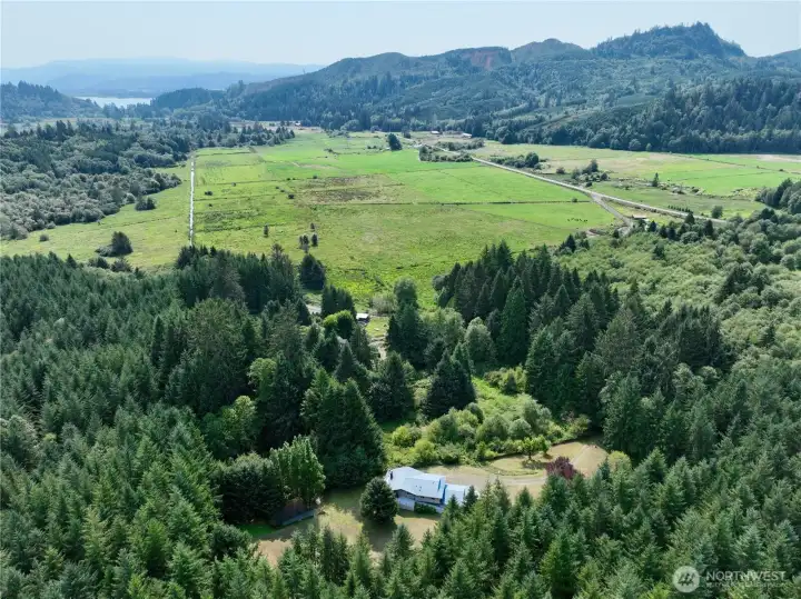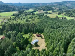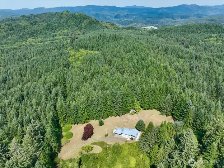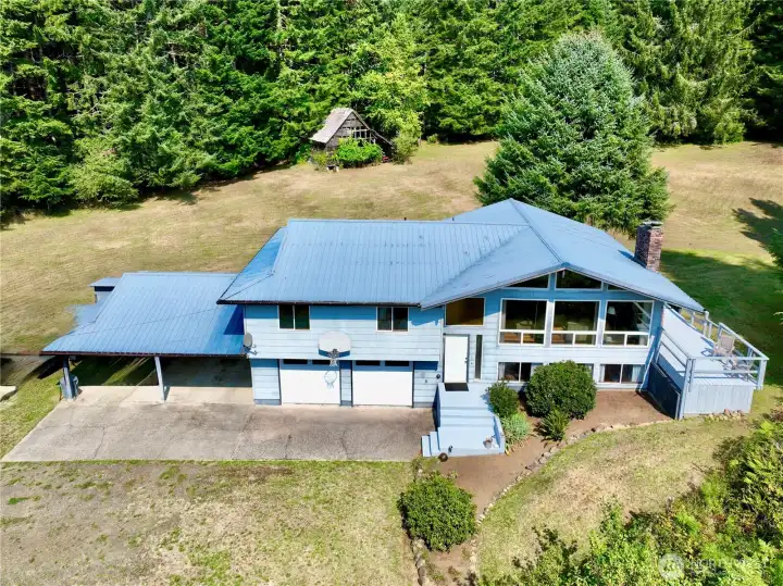 Private Homestead on 2 Acres High Above the Columbia River! Amazing location on a mountain above beautiful Skamokawa, WA. Use as a full-time residence or short-term rental. Surrounded by privately-owned designated forest land. Secluded 1/4-mile driveway. Enter this 1448 sf home into the great room with wall of windows, vaulted ceilings and custom stone fireplace. Follow the hallway to a full bathroom, primary en-suite with walk-in shower, and 2 additional sunny bedrooms. Downstairs is a large bonus room with custom stone fireplace, a bathroom with walk-in shower and another spacious bedroom. Ramp for easy access to second level. Heavy duty cement foundation. Large detached storage building. 2-car attached garage. 2-car attached carport.