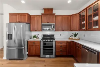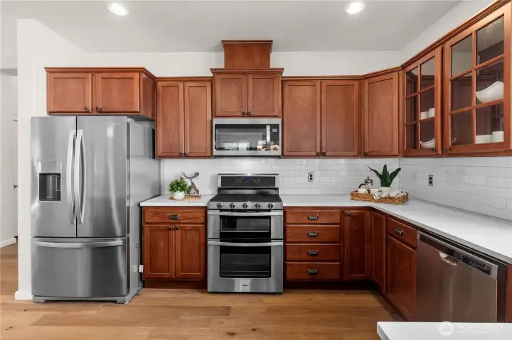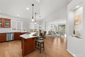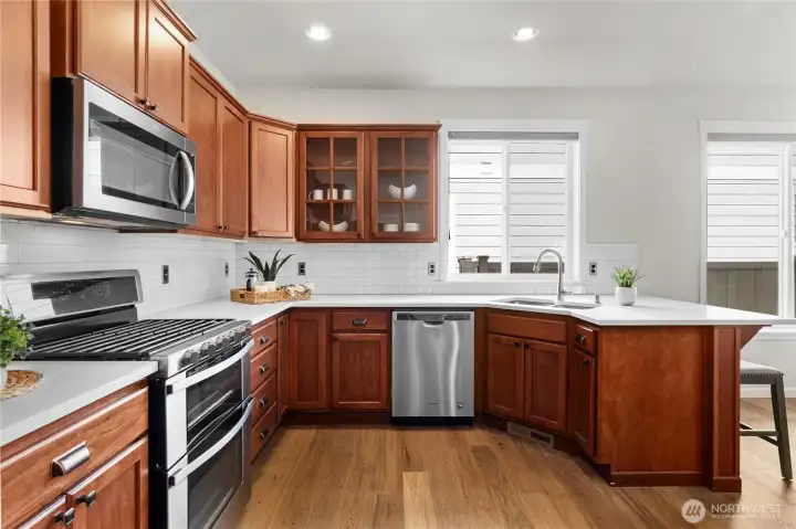 Better Than New, Rob Rice-Single-Level Gem loaded w/upgrades! Vaulted ceilings, architectural details, skylights, & elegant hardwood floors create a light-filled & inviting atmosphere. Entertain in the gourmet kitchen w/quartz counters, a spacious island + breakfast bar, pendant lighting & double ovens. The open-concept design flows into the great room, w/a cozy gas fireplace. Retreat to a primary suite w/5-piece bath & WIC. 90% efficient gas heat, A/C, tankless H2O heater & up/down blinds ensure year-round comfort. Enjoy the extended patio & one of the best lots in the neighborhood next to a resource parcel for added privacy. This is the one you’ve been waiting for. All the upgrades are done for you & all appliances stay.