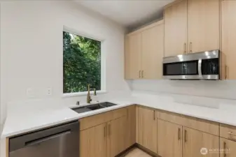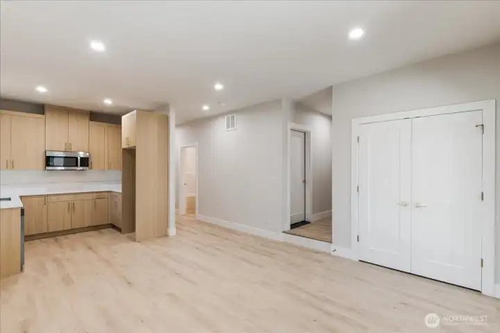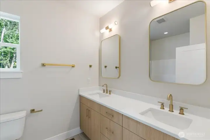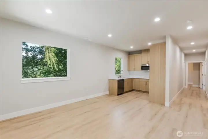 New construction on a peaceful .55-acre lot in a quiet, established neighborhood. Main level: 4 bedrooms (or 3 plus den/office), 2 bathrooms, open, light-filled living space. Primary suite with tiled walk-in shower, walk-in closet, and natural light. Kitchen with quartz counters, large island, and modern finishes. Lower-level ADU/in-law suite: 2 bedrooms, 1 bathroom, sleek full kitchen, full washer/dryer hookups, living/dining space with private entrance—perfect for multigenerational living or Airbnb. Two fully covered decks with greenbelt views for year-round hot tub, grilling, or relaxing. 3-car oversized garage. Flexible layout, rare new construction in a mature setting. This gem is awaiting it's new owners!