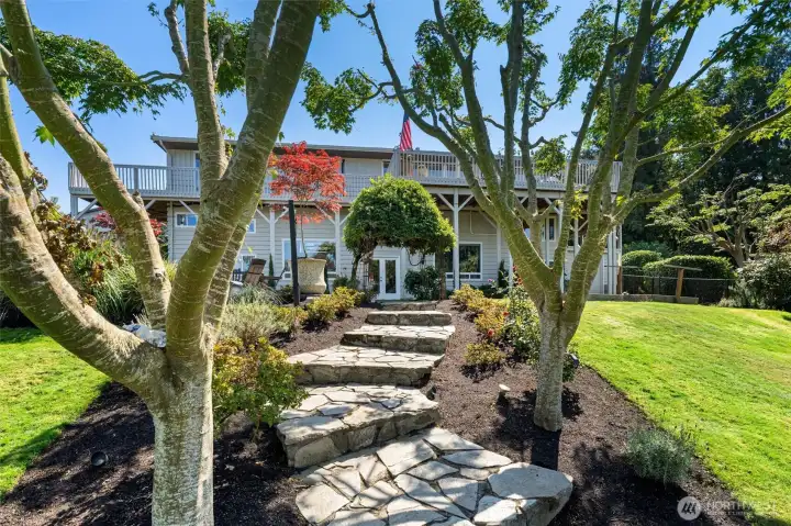 Perched above Puget Sound, this 4,036 sq. ft. home offers 6 bedrooms, with 200 ft of gated driveway and potential ADU in the basement (buyer to verify). Water views dominate nearly every room, complemented by walls of glass and soaring ceilings, creating a bright, open space. The chef’s kitchen features high-end appliances and custom finishes, perfect for gourmet or casual meals. The primary suite provides a private retreat with stunning views, a spacious 5-piece bath, and walk-in closet. Expansive decks and indoor-outdoor areas are ideal for relaxing and entertaining. Additional features include a 2-car garage, RV/boat parking, and a large laundry room, embodying Northwest elegance with warmth.