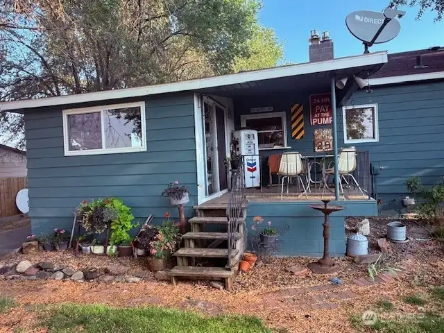 Spacious four-bedroom, one and three quarter bath home on 2.73 acres across two parcels. The property includes a 600 sq ft detached shop and garage, a 240 sq ft attached garage, animal pens, and Crab Creek flowing through the back. The home offers 1,212 sq ft on the main floor plus a full 1,212 sq ft basement. Recent updates include a newer roof, exterior paint, water heater, and central AC added in 2023. Heating is provided by forced-air gas and two gas stoves, with a wood stove in the shed. Multiple covered porches, storage buildings, an underground sprinkler system, and a partially fenced backyard complete this quiet edge-of-town living.