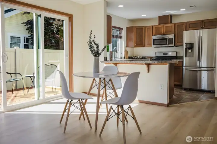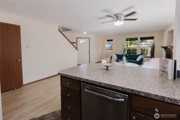 Built in 2015, this 3 bed, 2.5 bath home is move-in ready with new plank flooring and fresh paint! The main level features a huge open concept living & dining space, perfect for entertaining, plus a modern kitchen with stainless appliances. Upstairs offers spacious primary suite with walk-in closet & private bath, 2 bedrooms, laundry, linen closet, a full bath. Enjoy efficiency with natural gas heat, gas fireplace, and tankless water heater. Fully fenced sections on both sides of the driveway—perfect for pets or a dog run. 2-car garage, driveway, and extra parking add convenience. Close to shopping, freeways & JBLM. Pre-listing inspection & fixes available—nothing to do but move in! Ask your agent about downpayment assistance programs.