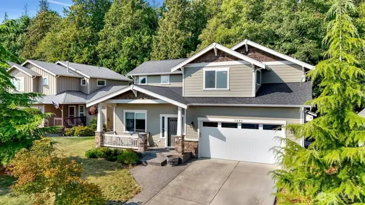 Welcome to the highly sought-after Pacific Highlands neighborhood, complete w/ parks, ball courts, play gyms, & picnic areas, just around the corner from the esteemed Cascadia Elementary. The open layout of this beautifully maintained Modern Craftsman home features an expansive kitchen designed for crowds, w/ beautiful laminate floors on main level, carpeted upper level, stunning spindled staircase, & an abundance of windows w/ breathtaking views of Mt. Baker. Fully landscaped yard is fenced on 3 sides & backs to serene forest. Relax on the charming covered front porch w/ recessed lighting & enjoy a large back deck—ideal for relaxing or entertaining. Exterior hot water faucet, tankless water heater, & 95% energy-efficient gas furnace.