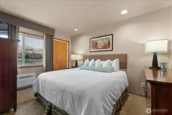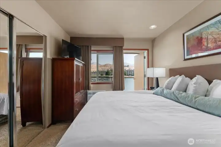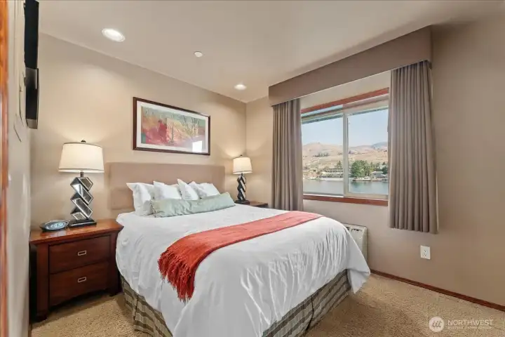 Grandview On The Lake WF condo on Lake Chelan! #528 is a 2 BED 1 bath condo w/ incredible views of Lk Chelan, the Chelan River, & downtown. Rare up lake facing corner unit has an oversized wrap around deck making it 1 of very few to offer this panoramic view! Unit has no stairs to access & comes fully furnished turnkey & solid vacation rental history w/on-site rental company. Being a 2 bedroom has also allowed this unit to have solid historical monthly rental in the off season! Dues include sewer, garbage, H2O, power, internet, TV, common area maintenance, & exterior insurance. Grandview has a gorgeous pool, hot tub, Bistro, buoys for registered guests & is in a prime location in downtown Chelan! Ready for rental or personal use year-round!