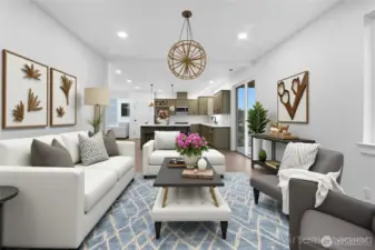Stunning new design on The Ridge at Deschutes Heights. This warm & open floor plan features a grand two story entry with a great room concept finished in light accents & a full bath on main floor. The kitchen is to be finished with Calacatta quartz & herringbone backsplash. Upstairs will include French doors into primary with tiled 5-piece bath, a bonus room, & utility room with wash sink & abundance of storage. The covered back deck overlooks Deschutes River & serene riparian land. Located on a quiet dead end street surrounded by sidewalks & community parks all within Tumwater Schools.