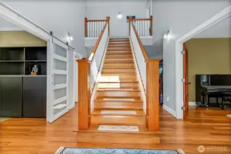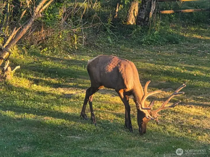 Beautifully updated 4000 sq ft 4-bedroom, 2.5-bath home sits on 5 acres in sought-after Blacktail Ridge. Covered front porch invites you into entry w/soaring staircase, flanked by an office & sitting room. The great rm w/ a stone fireplace connects to the gourmet kitchen featuring an oversized island, chef's cooktop, double ovens, slab counters, eating nook. Dining rm, a vaulted game room w/wet bar, door to patio. Primary bedroom with a fireplace, deck access, spa-like bathroom w/tiled wet room, soaking tub, walk-in closet. Spacious utility rm, quality bamboo flooring, back covered deck, attached 3-car garage, 3-bay detached shop w/ unfinished upstairs. RV Parking, fruit trees, chicken coup. Enjoy visits from local elk herds and wildlife.
