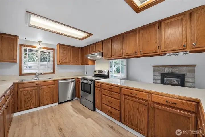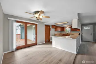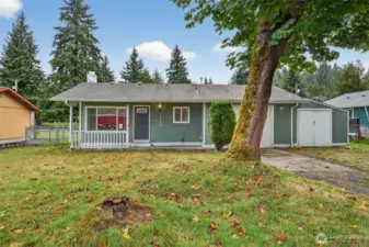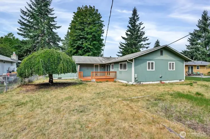 Tucked away on a low-traffic cul-de-sac, this delightful single-story home offers nearly 1,100 sq ft of comfortable living space on a shy ¼-acre lot. Featuring 3 bedrooms and 1 full bath, the home welcomes you with a spacious living room, complete with a cozy gas fireplace that flows seamlessly into the open kitchen and dining area. New flooring, baseboards and shed doors 10-2025. Step outside to your expansive, fully fenced backyard—perfect for entertaining, pets, or play. A large storage shed and a deck make this outdoor space as functional as it is inviting. Enjoy the convenience of a prime location with quick access to schools, shopping, and I-5.