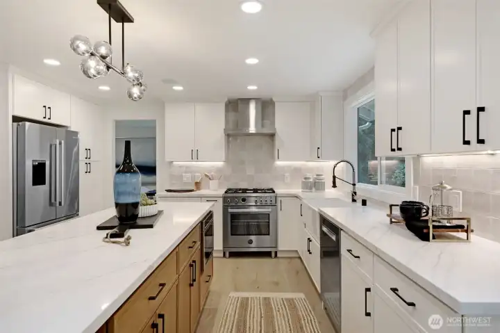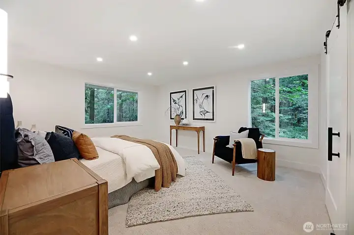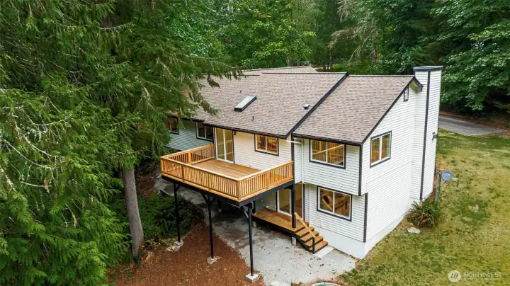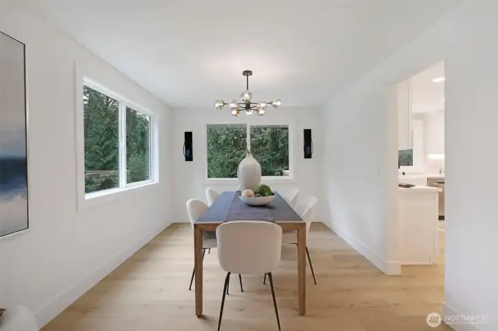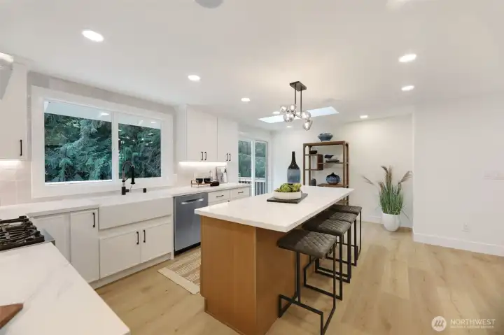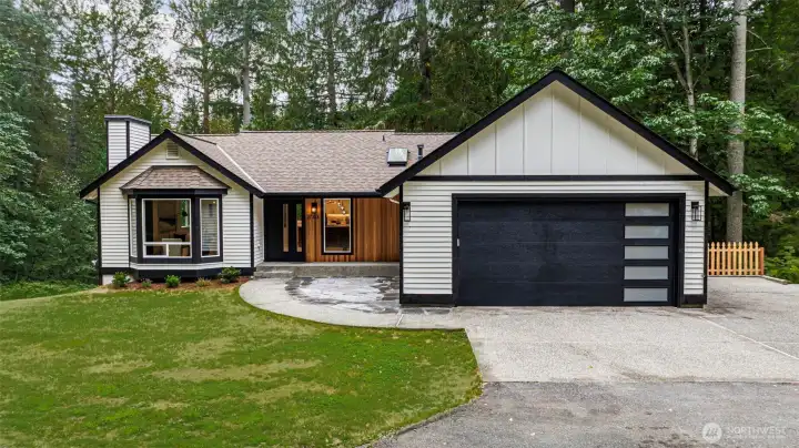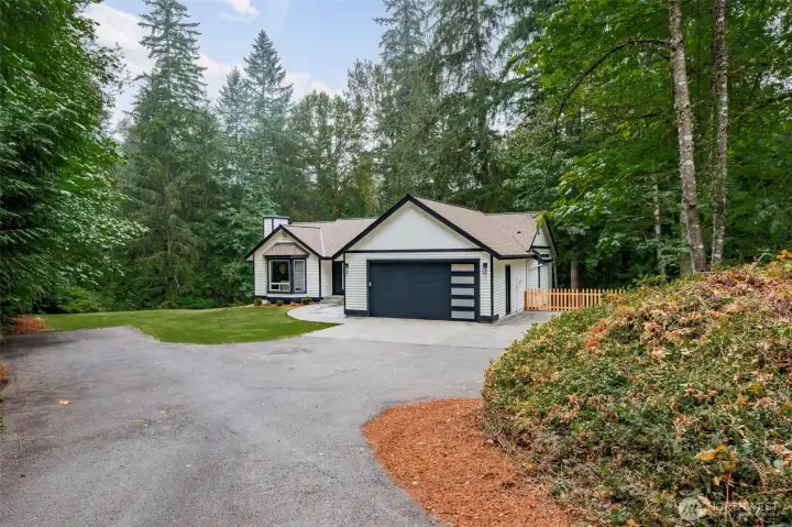 Discover your private retreat in Union Hill! This beautifully remodeled modern rambler with daylight basement rests on 5 serene wooded acres. The open floor plan showcases a stunning new chef’s kitchen with quartz counters, European stainless appliances, and an inviting dining area that flows to a large entertaining deck. The spacious primary suite offers a spa-like bath with heated floors and walk-in closet. Downstairs features two additional bedrooms, an office, and a huge family room perfect for a theater, game room, or more. With new windows, roof, and fresh paint inside and out, this home is move-in ready—just minutes to Redmond Town Center, shopping, and Microsoft.