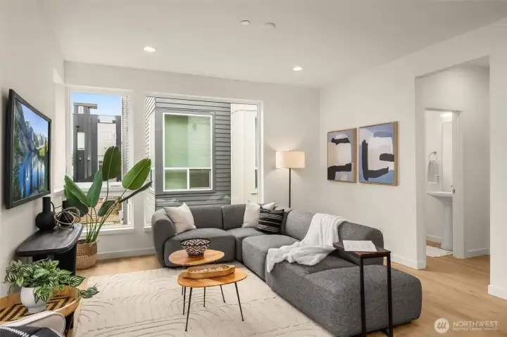 Rates as low as 1.99%* - This home built by esteemed builder Shelter Homes, boasts a 1-car garage, Bed/Bath on entry level w/access to rear patio - Next level = a stunning kitchen w/walk-in pantry, large island w/seating, dining space, great room & 1/2 bath! 2 bedrooms on the 3rd level plus great primary suite, side by side laundry & access to the roof deck w/ Mtn views & more! EV-Capable - Power & Water on the level-surface roof deck, courtyard access & more! Across from Crown Hill Park, close proximity to restaurants, shopping (Met Mrkt), recreation (Golden Gardens), transit & all of what you love about Ballard! *Terms Apply