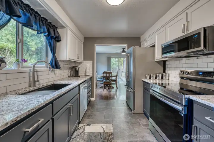 Stylish, fully updated home in Sequim’s quiet Sunland community, showcasing pride of ownership throughout. An efficient pellet stove warms the inviting living room, which features an office nook, while the modern kitchen opens to a formal dining room with a ceiling fan and access to a private backyard. The primary suite features a gorgeous tile shower, and both bathrooms are beautifully finished.Enjoy private patio spaces on each side of the home, surrounded by a privacy hedge for a serene retreat. Numerous upgrades include a new roof, windows, up/down blinds, flooring, lighting, appliances, water softener, and water heater—truly move-in ready! Enjoy the many amenities at the community pool, pickleball courts, RV storage, and meeting place.