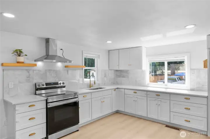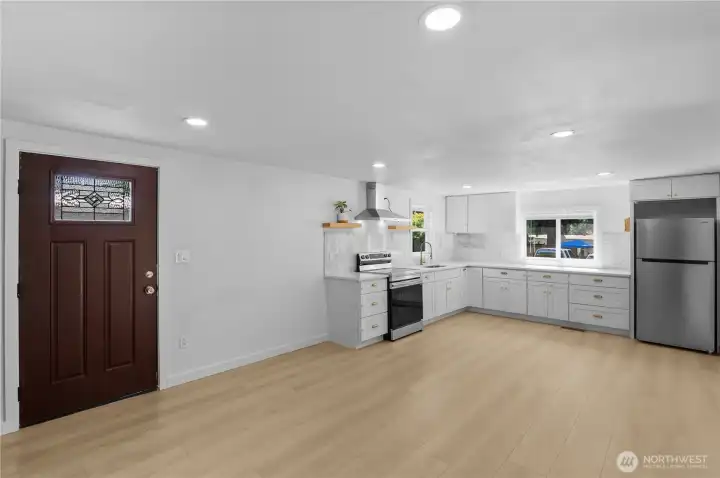 Charming and Move-In Ready Home ideally situated in the heart of Black Diamond! This 3 bed, 1 bath home fully remodeled home offers 952 sqft of comfortable living on one of the larger lots in the park. Bright and open layout featuring new engineered hardwood floors throughout and recessed lighting. Kitchen with quartz countertops, new SS appliances, stove with hood vent, soft close kitchen cabinets and drawers. Newer furnace, water heater and plumbing lines. Large covered deck with Trexx decking. Enjoy your own private yard space—perfect for gardening, entertaining, or relaxing outdoors. Conveniently located just north of Black Diamond historic downtown, minutes from town hall shopping center and very close to Maple Valley. Welcome Home!