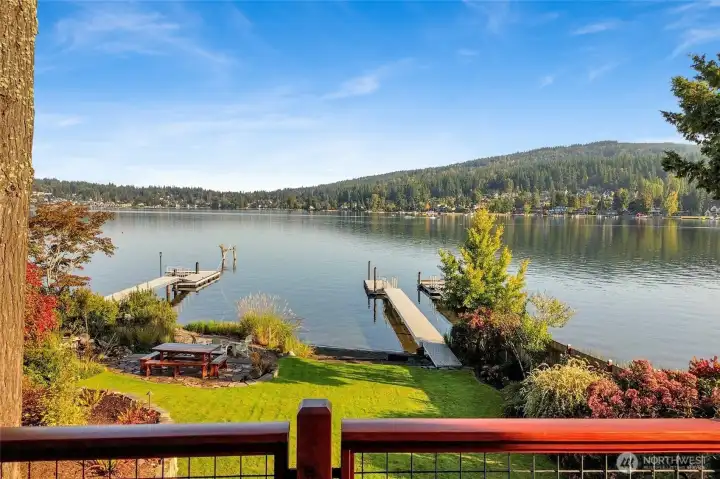 Stunning Lake Whatcom Waterfront Home in Old Geneva. Located on a private non-through lane, this custom built 2010 home has quality craftsmanship & fine woodwork throughout. Vintage reclaimed wide-plank fir floors, cherry cabinetry, walnut built ins & custom fir windows & trim on every level. Thoughtfully designed Chefs kitchen & beautiful upper level family room/ double office/library. Lower level great room opens onto patio & lakeside yard w/ beach & new dock. New heat pump/ furnace/AC. Three car garage w/ charging station & vast storage above. Yard behind garage holds possible potential for another small home or DADU. Meticulously maintained and move in ready. A quiet, sunny, in-town oasis just a short walk to Geneva Elementary!