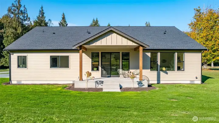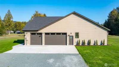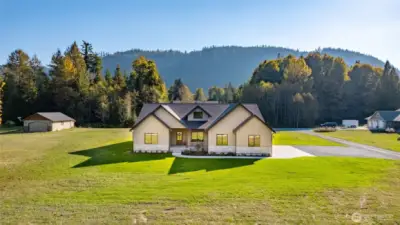 High-end open concept new construction one story home w/ mountain views! Enjoy the rich details of this quality-build featuring luxury vinyl plank floors, vaulted ceilings, waterfall kitchen island w/ eating bar, matte black sink, & solid quartz counters throughout. Living room w/ fireplace & abundant windows. Airy primary w/ walk-in closet, dual vanities, freestanding soaking tub, & walk-in tile shower w/ frameless glass door. Office/workout/playroom w/ French doors. Laundry/mudroom w/ sink & ample storage. Ductless heat pump & A/C. Three car garage w/ space for storage/workbench. Covered back patio to enjoy rain or shine & a generous amount of yard space for gardens, play, hosting events, & more.
