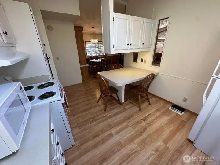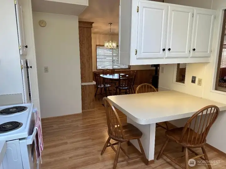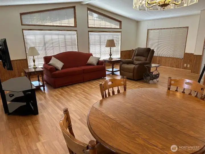 Well cared for 1152 sq ft double wide manufactured home in Kloshee Illahee just off I-5 near Enchanted Village is 55+ community which offers resort style amenities. The 2bed, 2bath freshly painted interior is well maintained, open concept with vaulted ceilings & plenty of natural lighting. Master bath has walk in shower, half bath, a tub. Just past the kitchen island is the dining space with a built in hutch for storage & dish wear display. The 2nd bedroom opens to a newly constructed deck leading to the back that overlooks the walkway that winds to the clubhouse just beyond an open field. Residents can reserve a space for events use for the pool, play the bocci course, etc.The park mailbox & Guest parking is directly across the street.