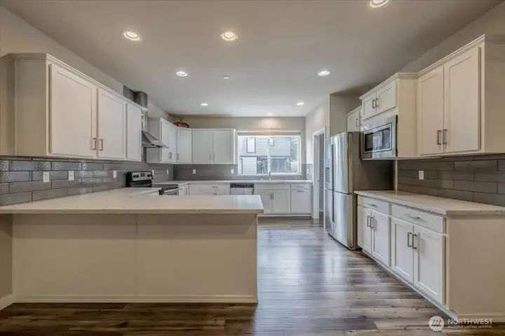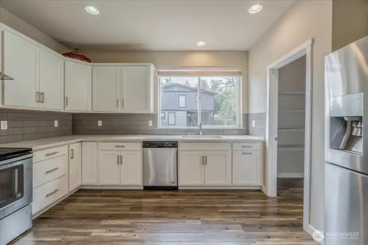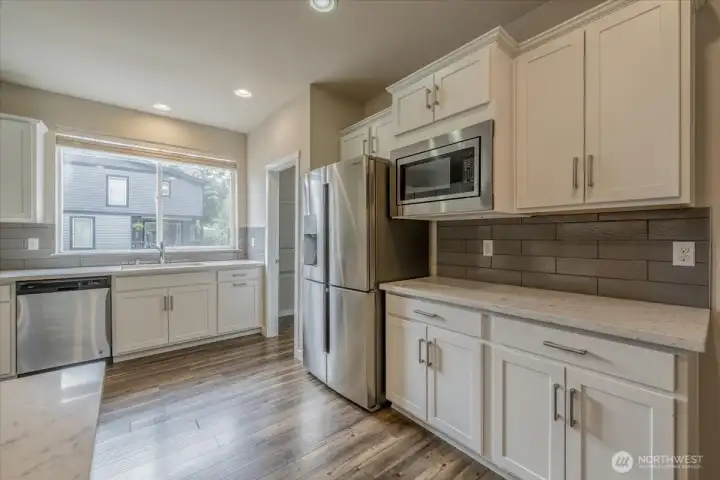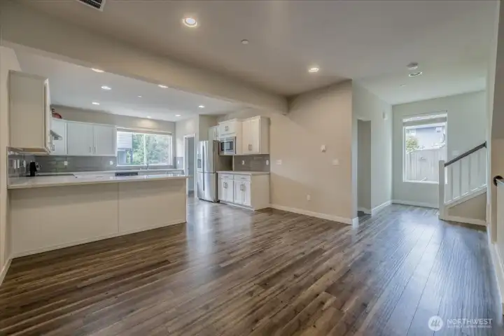 $40k PRICE ENHANCEMENT! Move-in Ready! End-unit 3-story Townhome with 4 bedrooms plus office/den (or 5th BR?), 3.5 bathrooms, 2-car garage and 2,493 sq ft of spacious living. Features a rare main-floor second primary suite with its own entrance and patio—ideal for guests or multigenerational living. Enjoy the large, covered decks, stainless steel appliances, roomy pantry, and a beautiful, private backyard bordering greenbelt with sunrise and sunset views. Meticulously maintained by one owner. Includes double car garage, low $102 HOA, and is near the bus route, transit station, Boeing, Paine Field, I-5 and a long list of amenities. A rare gem in a prime location! Like new, move-in ready and only 7 years young!