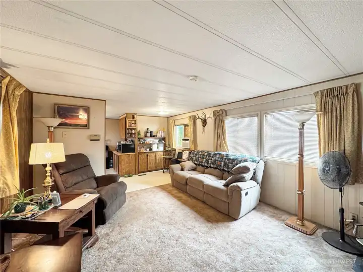 Welcome to this well-kept single-wide manufactured home. Featuring a practical layout, this home offers a spacious primary suite complete with its own bathroom, walk-in shower, and soaking tub for relaxing at the end of the day. The living room provides a comfortable space to unwind, and the pellet stove adds warmth and efficiency. The kitchen includes ample cabinet storage and flows nicely into the main living areas. A convenient laundry area and additional bedrooms make the home functional for everyday living. Outside, you’ll appreciate the covered carport along with a garage that provides extra parking or room for hobbies and storage. Located in a welcoming community, this property is a solid choice for comfortable living.