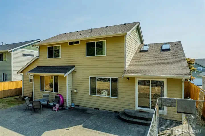 You need to see this beautiful 2498 sq ft 2-story in the desirable Harvest Ridge neighborhood of University Place! Elegant entry with soaring ceilings lead into the open and vaulted kitchen/dining room/family room area with gas fireplace, hardwood floors, skylights and large windows that allow for tons of natural light. The main floor primary suite is a huge selling point and comes complete with large soaking tub, double sinks, walk in closet and double door entry. Also downstairs is a den/office, formal living room, laundry room with sink and a half bath. Along with 2 additional upstairs bedrooms there is a large open loft area. The backyard is fully fenced with oversized patio and a small dog run on the side of the house.