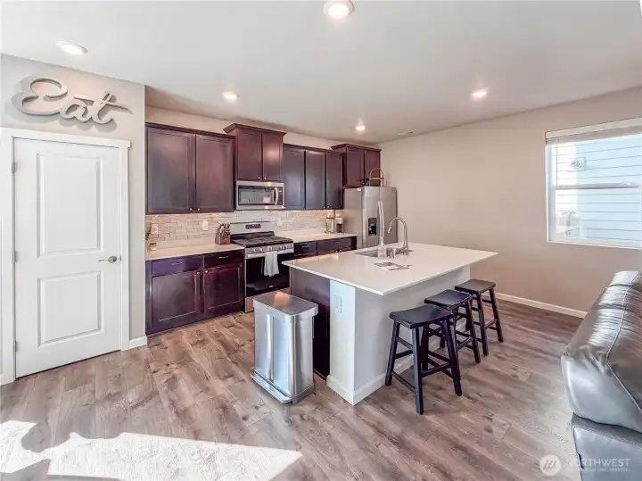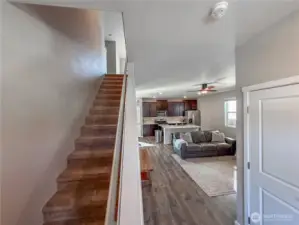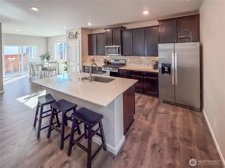 Spacious & Open! 3 bedroom, 2.5 bathrooms 2 story home. Lots of upgrades include, Stainless steel kitchen appliances, Quartz counter tops, 42-inch cabinets, Plank flooring. Primary bedroom has step in shower, soaker tub, spacious vanity, and large walk in closet. Large backyard. Home also has Central AC! Large Additional open concrete patio added across the back of the home that connects with the covered patio area for entertaining or relaxing! Driveway concrete has been extended wider & concrete walkway added from driveway to back patio! Nice extra's already done, Don't miss out on this one!