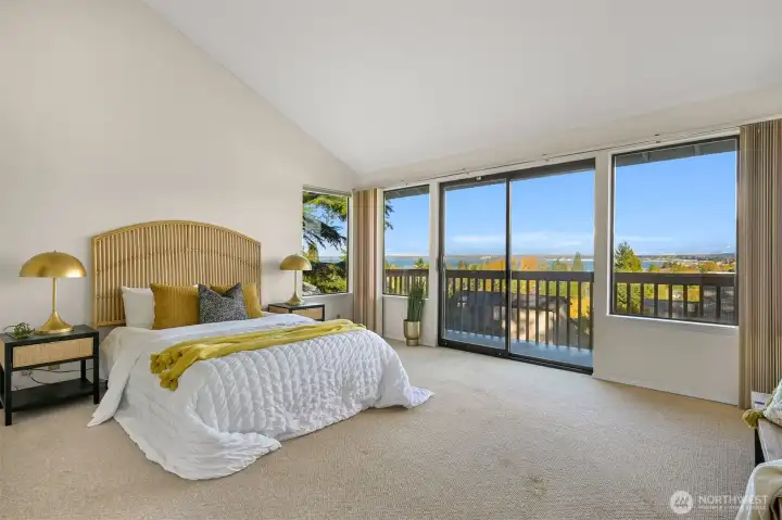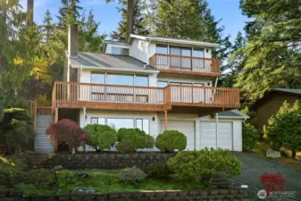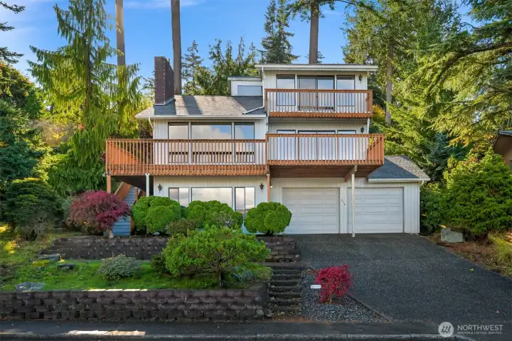 Sweeping views of Bellingham Bay, the city, & the Canadian mountains! This mid-century Edgemoor gem has timeless charm and endless potential for sweat equity. Vaulted ceilings, warm wood accents, & stone details create a beautiful backdrop for your personal touch. Brand new roof and plush carpet! Top floor is a dedicated primary suite with NEW view deck, perfect for sunset-watching. Private lower level w/ a separate entrance offers flexible space for guests, work, or ADU potential. Attached 2-car garage + an unfinished workshop for storage. Quiet, tree-lined neighborhood just a short walk to Fairhaven, Marine Park, Clark's Point, & endless trails. Opportunities like this don’t come around often! Bring your vision & make it yours!
