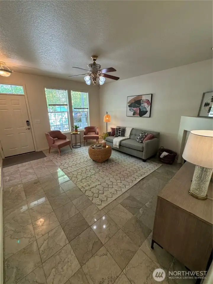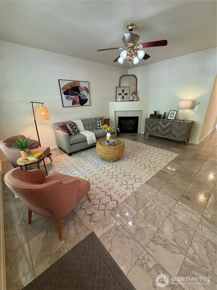 Beautiful 3 bed 2 bath Rambler that's staged in desirable Hawks Prairie area. Lovely covered front porch opens up to the living / family room with wonderful tile flooring and lots of natural light. The gas fireplace for those cooler nights and A/C for those warmer evenings. Brand new 30-year roof! Newer paint, lots of updates and upgrades. The kitchen features brand new stainless steel appliances connecting to the open living space. Fully fenced yard with HOA provided lawn care and redesigned sprinkler system. All new garage door and components and modernized alarm system. First American one - year home warranty! Don't miss out on the opportunity to own this wonderfully maintained home! Close to I-5, JBLM, shopping, restaurants and more!