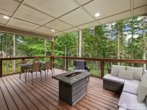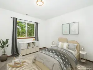 Welcome to your ultimate forest sanctuary on 6.7 acres of PNW splendor, surrounded by towering trees in a gated community with privacy, security, and scenic walking trails. A covered porch opens to a grand entry with soaring ceilings & a wall of windows framing serene forest views. The open-concept living room, dining area, & chef’s kitchen are ideal for entertaining, while a fireplace and covered deck extend living year-round. The private primary suite offers a soaking tub, luxe shower, dual vanities, & walk-in closet. A light-filled office with forest views, plus two guest suites on the opposite side of the house, each with their own bath, provide perfect multi-generational living. A spacious laundry & half bath complete this refined plan